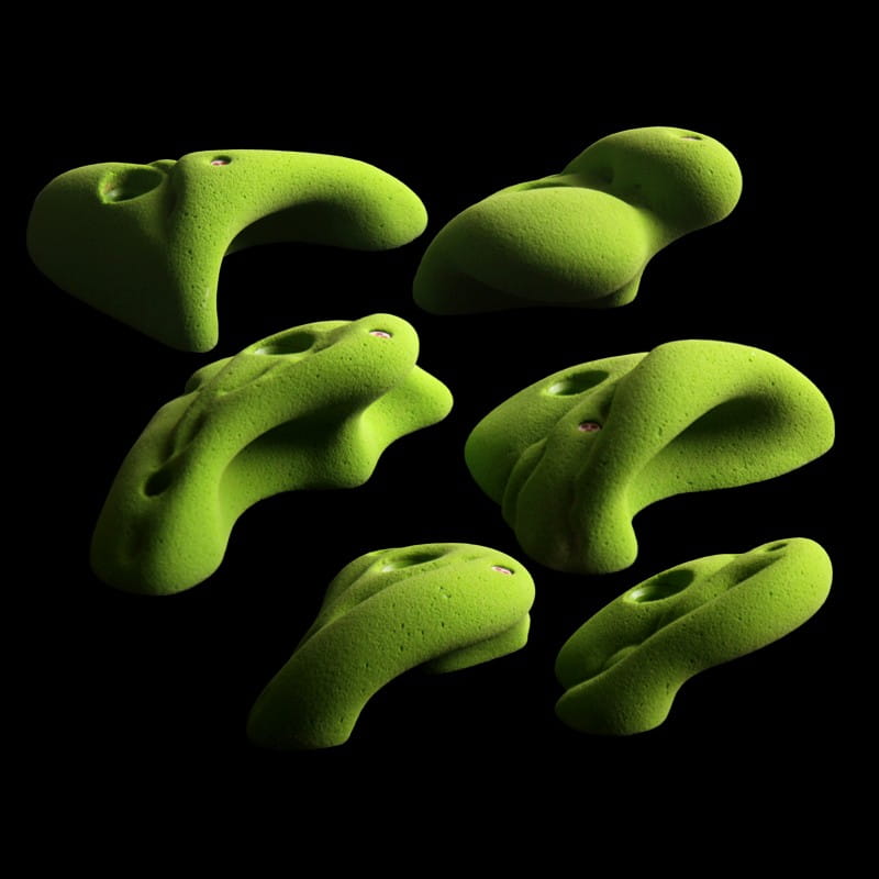 AMOK is a set of 6 positive climbing holds and jugs for small and big overhangs.