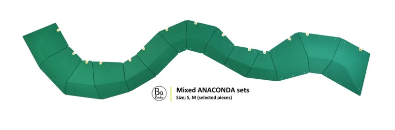 Each set contains adapters (also available as a separate product - click) that allow you to combine sizes and create a mega-snake, as in the last photo, where a selection of S and M size pieces are combined.