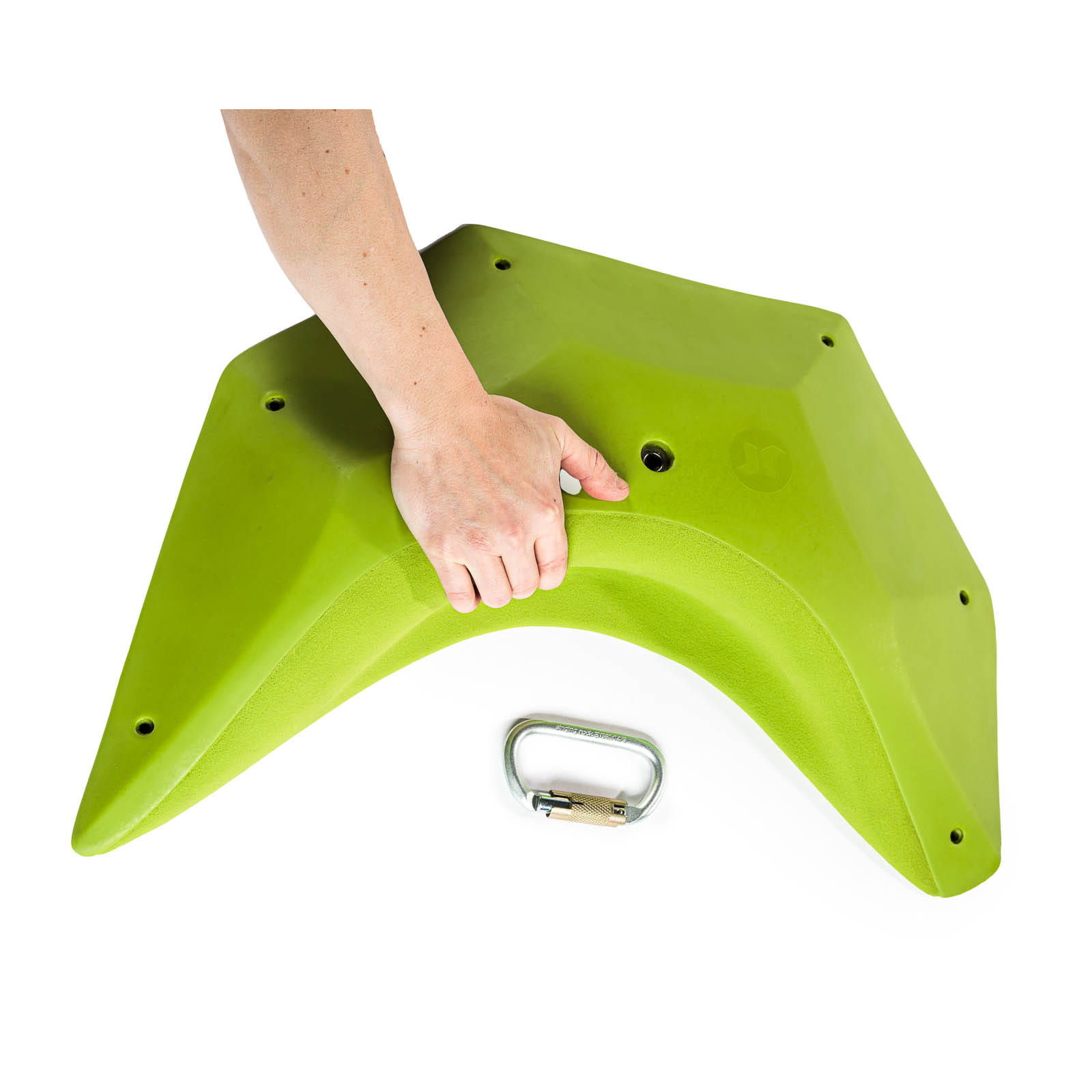 The Slicks family holds are medium difficulty holds that allow setting medium grade boulders on moderate angle walls. Difficult on steeper walls. All the holds, even the largest ones, are quite low profile so they work well on slabs as well. All the holds can be mounted with screws only. All screw holes are perpendicular to the base of the holds, so you won't chip the walls.